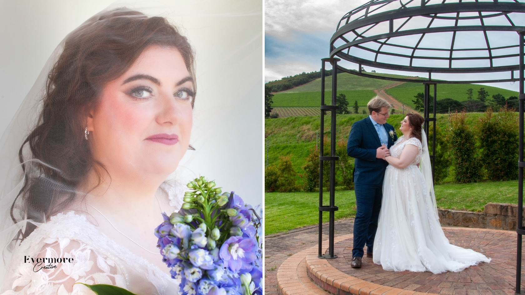 Their wedding day unfolded among rolling vineyards and distant mountain peaks, where soft light danced across the landscape and a gentle breeze carried the quiet romance of the countryside. It was a setting that felt both expansive and deeply intimate — a perfect reflection of their love.
